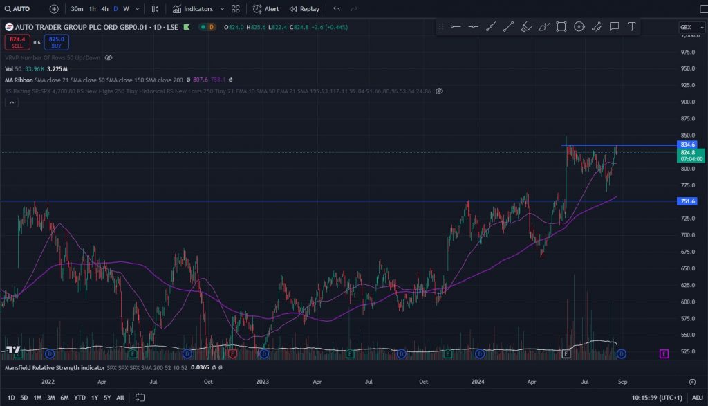 Recently broke out into new all time highs, which in itself would have been an excellent entry point. Since then it’s been trading sideways, with a clear resistance level. Looking to enter above 835.