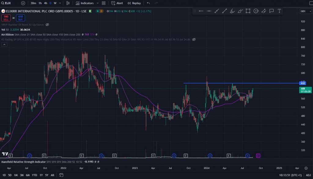 Here are eight UK stocks I’m watching that are setting up nicely from a technical perspective. All of these stocks pass my checklist as well, so are growing revenues and earnings at a decent clip. There’s of course no guarantee that any of these will work out as trades and this certainly isn’t advice, though my intention is to enter if any break through with reasonable volume.