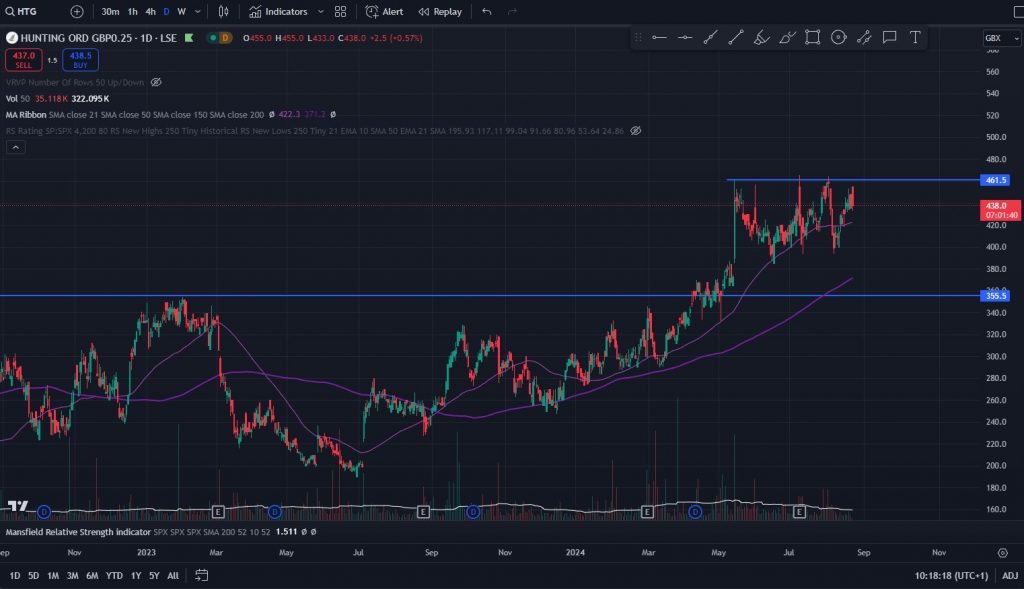 Currently in a phase two up trend. An opportunity to enter breaking through recent resistance level at 43p, or to wait until it breaks into all time highs at 47p.